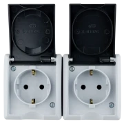 Aus-/Wechselschalter+Steckdose, waagerecht,Aufputz