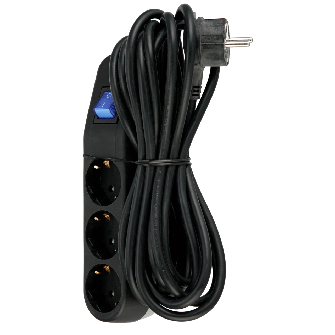 Zweifarbige Mehrfach-Steckdosenleiste ICE mit 3 Schutzkontakt-Steckdosen für eine flexible Stromversorgung von bis zu 3 elektrischen Geräten im Haus oder in der Wohnung. Durch die besondere Bauform mit rückseitiger Kabelführung können Sie das Kabel beidseitig ausführen. Der praktische Flachstecker der Leiste eignet sich auch für die Verwendung hinter Möbeln. Das einfache Herausziehen erfolgt über den ausklappbaren Griff am Stecker. Der flexible Stromverteiler mit extralanger 5 m Kunststoffleitung bietet ein kompaktes und stabiles Gehäuse aus schlagzähem Kunststoff. Alle Steckdosen sind zur Sicherheit mit einem erhöhten Berührungsschutz ausgestattet und eignen sich durch die quersitzende Bauform auch für elektrische Geräte mit Winkelstecker. Über den integrierten, zweipoligen Ein-/Ausschalter können Sie die angeschlossenen Verbraucher sicher vom Netz trennen. Bei Bedarf kann die Mehrfach-Steckdose über die verdeckten Befestigungsösen auf der Rückseite angeschraubt werden.
