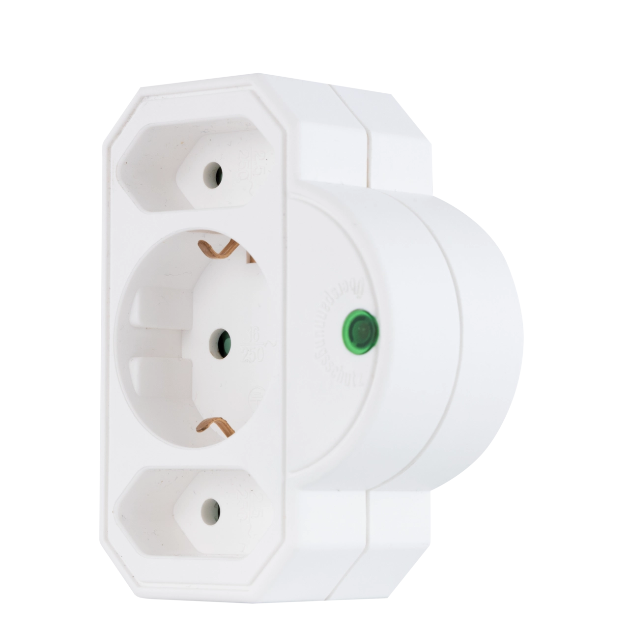 Entdecken Sie den praktischen Mehrzweck-Adapter, der es Ihnen ermöglicht, drei Geräte sicher an einer Steckdose anzuschließen. Unsere innovative Lösung schützt Ihre wertvollen Elektrogeräte effizient vor Schäden durch Überspannungen. Dieser einfach zu verwendende Zwischenstecker passt in jede gängige Steckdose und bietet durch sein solides, kompaktes Design langanhaltende Zuverlässigkeit. Für zusätzliche Sicherheit sorgt der erhöhte Berührungsschutz, während eine optische Anzeige den aktiven Überspannungsschutz visualisiert.