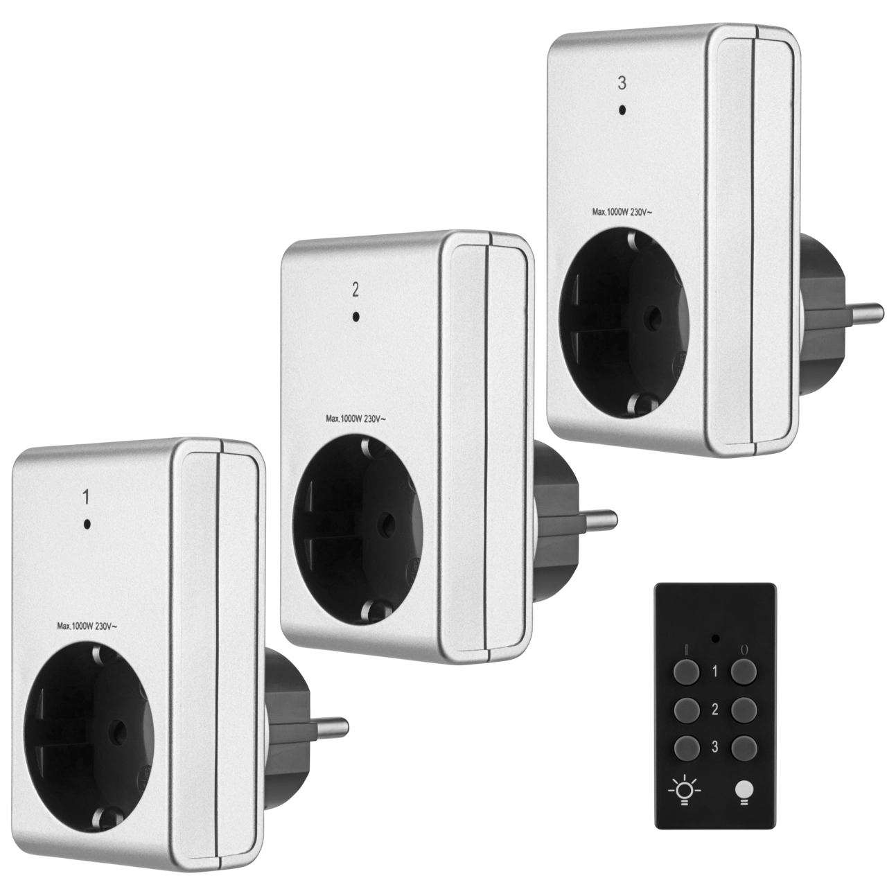 Das praktische Funkschalt-Set zum einfachen und komfortablen Schalten Ihrer elektrischen Geräte und Beleuchtung per Funk-Fernbedienung. Ideal für das bequeme Steuern im Haus und Wohnung für z.B. Tisch- und Stehlampen, Deko-Beleuchtung, Lichterketten, Computer, TV, Spielekonsolen, Ventilatoren, etc. Das flexible Set mit 1 Fernbedienung und 3 Steckdosen punktet durch die schnelle und kinderleichte Handhabung. Die Fernbedienung und Schaltsteckdosen sind bereits voreingestellt. Einfach in eine übliche Steckdose stecken und den Stecker Ihres elektrischen Gerätes einstecken - fertig. Mit der 3-Kanal-Fernbedienung können Sie bis zu drei Geräte getrennt schalten. Sparen Sie Strom und Geld durch Abschalten von Stromfressern wie z.B. elektrische Verbraucher mit Stand-by Funktion. Das Funkschalt-Set bietet Ihnen eine kompakte Bauform, eine Schaltleistung bis 1.000 W und eine Reichweite von 25m (Freifeld). Die Steckdosen sind zur Sicherheit mit einem erhöhten Berührungsschutz ausgestattet. Eine Batterie für die Fernbedienung ist im Lieferumfang enthalten.