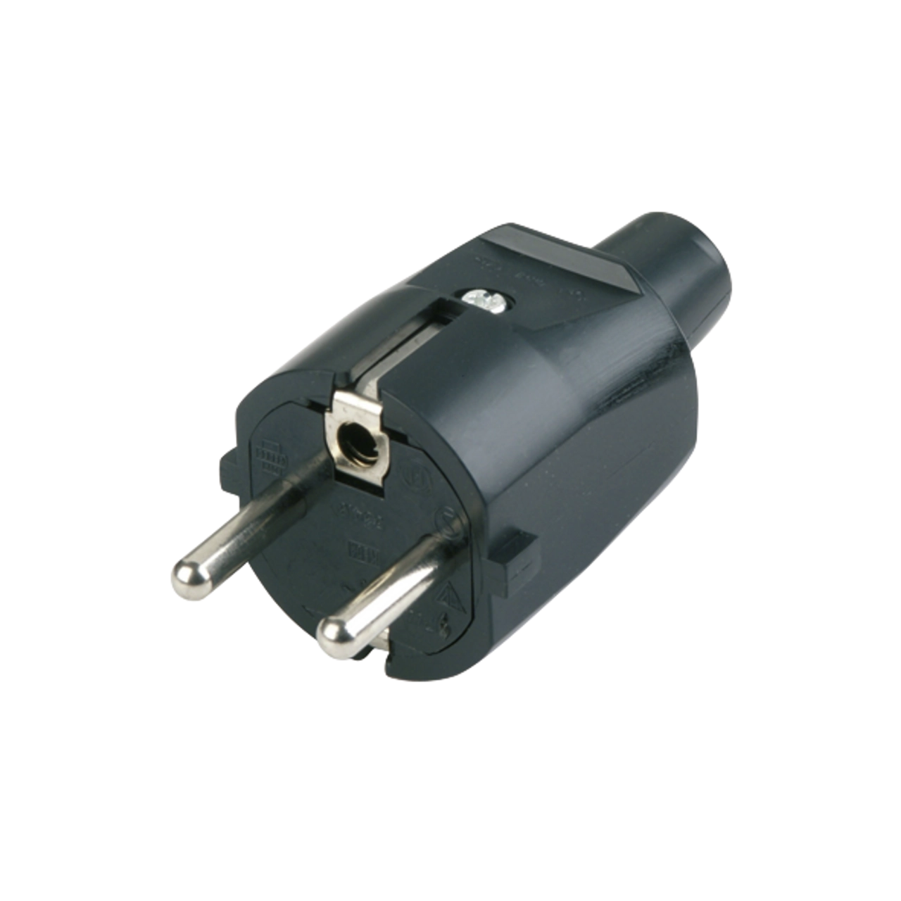 Wiederanschließbarer Schutzkontakt-Stecker mit zentraler Kabeleinführung für die einfache Nachrüstung, Austausch oder Ersatz. Der Stecker bietet ein kompaktes und stabiles Gehäuse aus hochwertigem PVC geeignet für die Anwendung im Innenbereich.