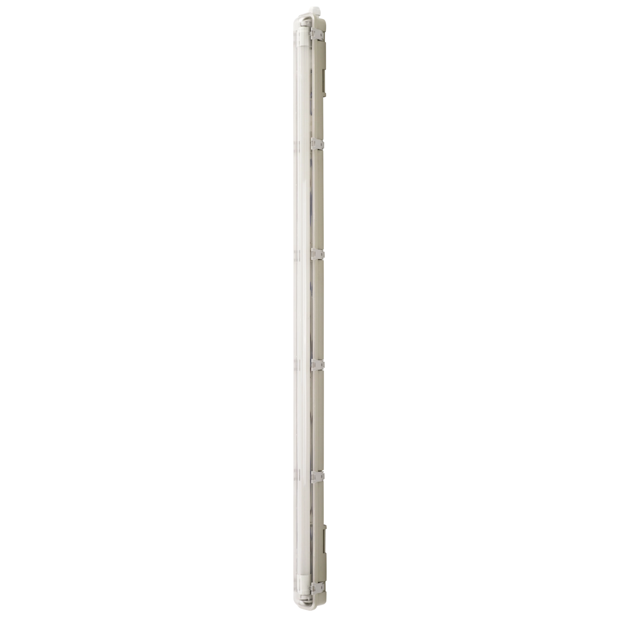 Die LED Feuchtraum-Lichtleiste Omega Plus eignet sich durch ihre robuste Bauform ideal für den Einsatz als Wand- oder Deckenleuchte im Innen- und Außenbereich, ideal für Keller, Feuchträume, Garagen oder Carports. Das stabile Gehäuse ist aus bruchfestem Spezialkunststoff, konzipiert für die Anwendung im Haus und für den Einsatz im Freien. Mit einem üblichen Wandschalter kann die Leuchte ein- und ausgeschaltet werden. Das wechselbare LED Leuchtmittel (T8) bietet eine nachhaltige und lange Lebensdauer mit einer hervorragenden Lichtausbeute. Es hat eine effektive Leuchtkraft in einem tageslichtweißen Licht, womit eine optimale Ausleuchtung Ihres Arbeitsbereiches erreicht wird. Für die Verbindung mit einem üblichen 230V Stromnetz sind im Gehäuse der Leuchte Anschlussklemmen enthalten. Im Lieferumfang befindet sich Befestigungsmaterial zur Montage der Feuchtraumleuchte. Das LED Leuchtmittel kann bei Bedarf durch eine handelsübliche T8/G13 LED Röhre ausgewechselt werden.